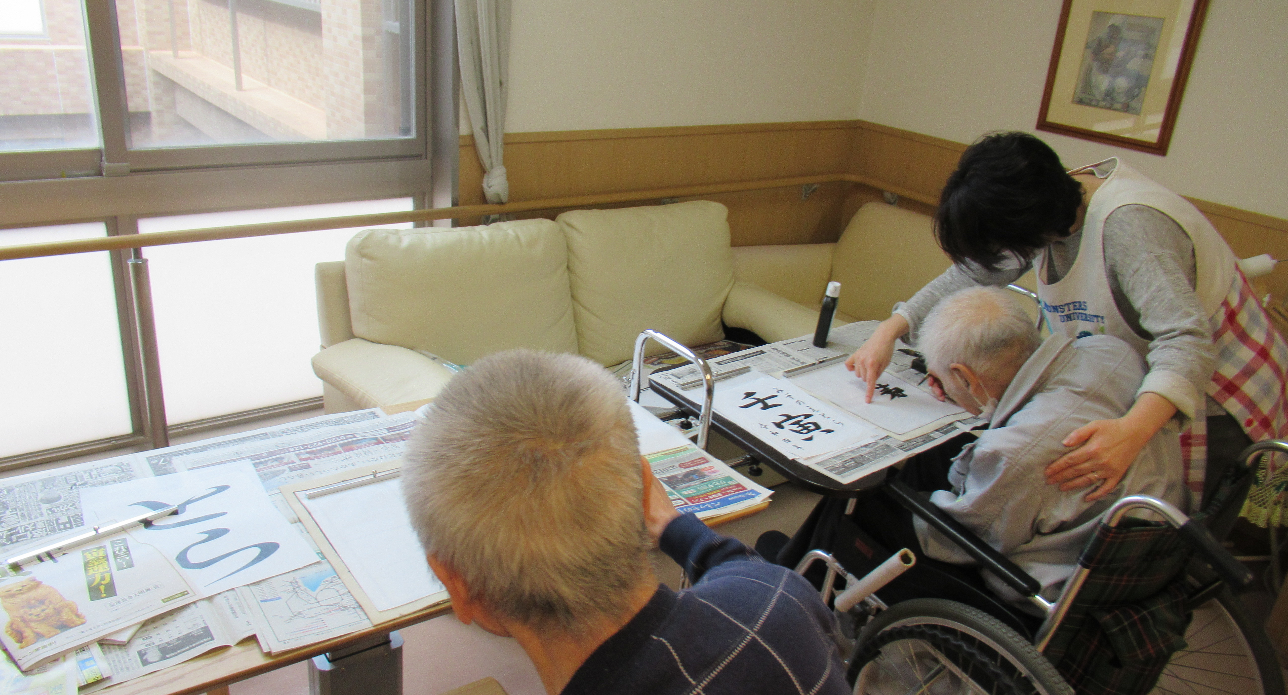 散歩、外出、外食、ショッピング、おやつ作り、出前、習字、製作、スポーツ系のレクリエーション、季節にちなんだ行事などが、ユニット毎、計画して行われます。他ユニットと合同で行うこともあります。